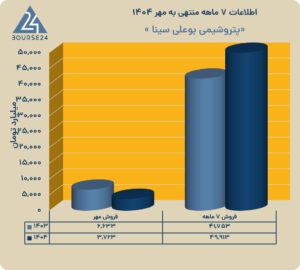 بوعلی در مهر ماه ۳۷۲۳ میلیارد تومان فروش ثبت کرد که از این میزان ۲۱۴۱ میلیارد تومان از بازار داخلی و ۱۵۸۲ میلیارد تومان از مسیر صادراتی حاصل شده است. ترکیب فروش نشان می‌دهد تمرکز شرکت بر تنوع بازار و حفظ سهم صادراتی نتیجه داده و حدود ۲۰ همت فروش صادراتی در دوره ۷ ماهه تثبیت شده است؛ سطحی که نسبت به سال گذشته رشد محسوسی دارد.
