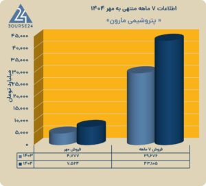 مارون در مهر ماه ۷۵۲۴ میلیارد تومان فروش محصول داشت که ۶۳۴۴ میلیارد تومان آن حاصل از فروش داخلی محصولات و ۱۱۸۰ میلیارد تومان آن فروش صادراتی بوده است.